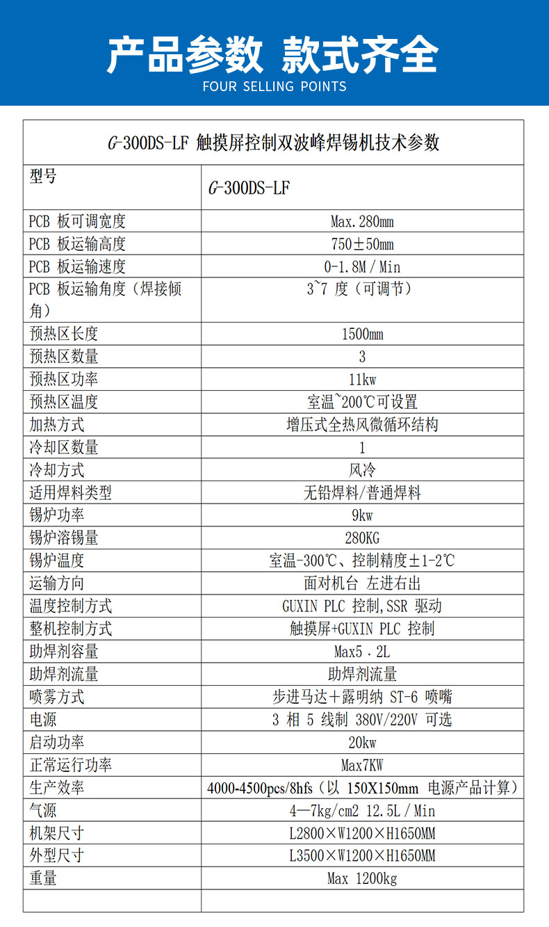 ◇錫爐波峰高度均采用電子變頻調速,可獨立控製波峰高度。