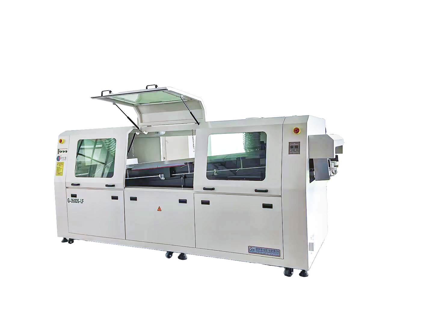 ◇助焊劑噴霧區和錫爐波峰焊接區采用密封式裝置,助焊劑煙霧從專用排風及回收通道排出,滿足車間環保要求。