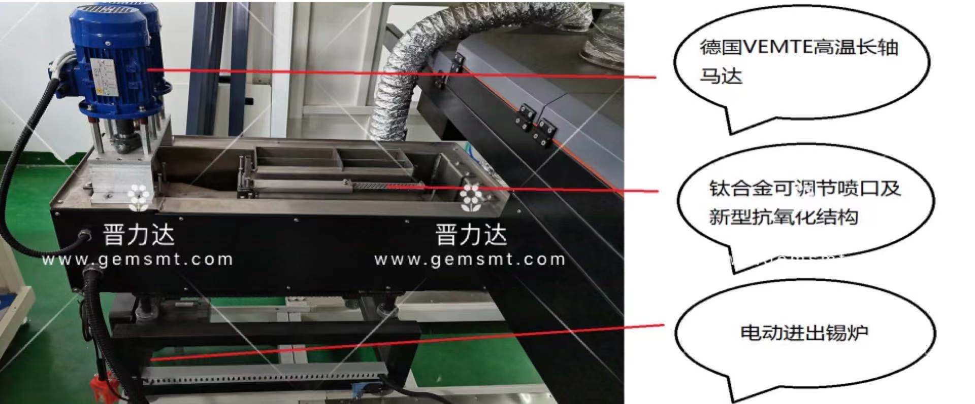 4、錫爐配備液位麵標誌線,可告知作業員最低錫液麵標準,避免錫麵低導致錫渣氧化量上升。
