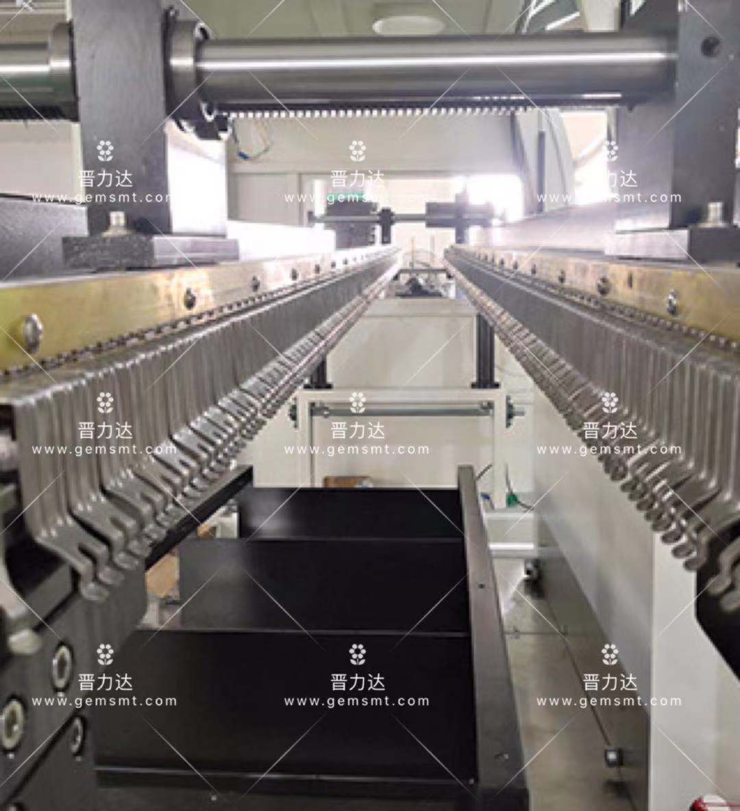 3、2011年3月份 江門金萊特電器股份有限公司購買我司15台型波峰焊,設備管理人員反饋鈦下垂,經工程師上門了解後得知客戶目前研發重型壓器板15KG/塊,長期生產導鈦爪和鋼扁磨損嚴重,我司了解後所有波峰焊由行業通用3MM不鏽鋼扁條改進為5MM加厚黃銅扁條,黃銅的特性是減少鈦爪的摩擦和磨損,減少傳動噪音。