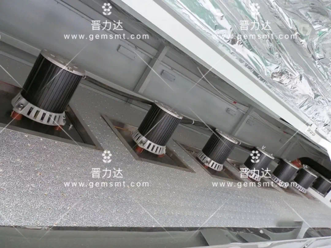 在此階段,溫度冷卻到錫膏凝固點溫度以下,使焊點凝固。冷卻速率越快,焊接效果越好。冷卻速率過慢,將導致過量共晶金屬化合物產生,以及在焊接點處易發生大的晶粒結構,使焊接點強度變低,冷卻區降溫速率一般在4℃/S左右,冷卻至75℃。
