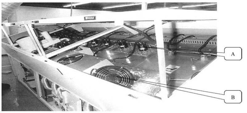 圖2-2-35 中B 處為熱風冷卻循環係統。它將91香蕉下载安装污版冷卻區中的熱空氣進行冷卻再將冷空氣輸送到91香蕉下载安装污版冷卻區,達到更好的冷卻效果。