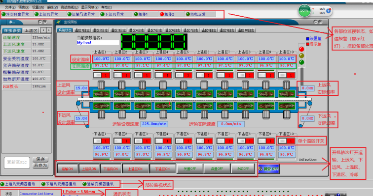 (4)爐溫參數設置:檢查係統畫麵參數與設置是否相符,參數設定根據產品調節各溫區溫度;注意修改完參數以點擊