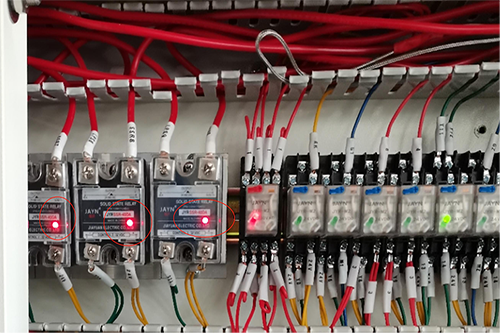 3、檢查設備的控製部分,對加熱進行檢測和控製。固態繼電器是否有輸出,如果不確定,用相鄰溫區的繼電器切換,判斷繼電器是否有故障。