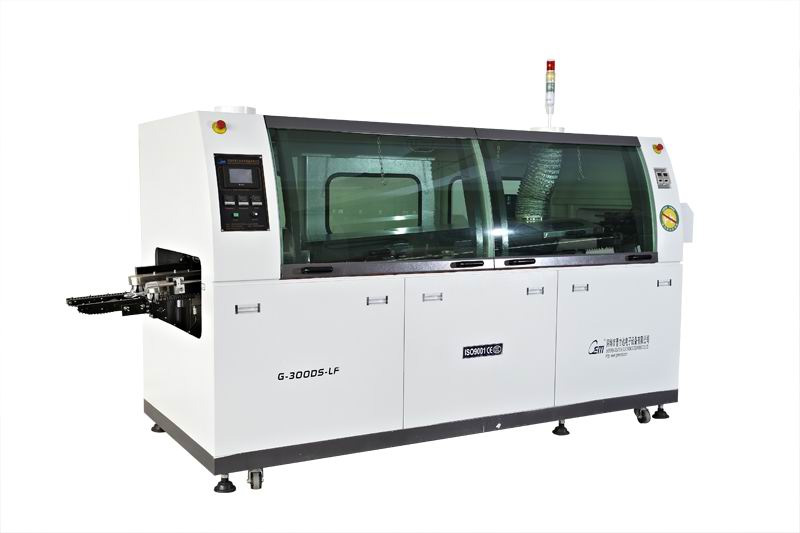波峰焊機主要是對插件的電子元器件插在電子線路板後進行焊錫焊接。在表麵安裝香蕉视频APP无限看(SMT)中印刷板的雙波峰焊接及表麵元件(SMC)電路板的單波峰焊接工藝中,均需應用液態釺料的波峰焊機。主要是指將熔化的軟釺焊料,經電動泵或電磁泵噴流成設計要求的焊料波峰,亦可通過向焊料池注入氮氣來形成,使預先裝有元器件的印製板通過焊料波峰,實現元器件焊端或引腳與印製板焊盤之間機械與電氣連接的軟釺焊。根據機器所使用不同幾何形狀的波峰。