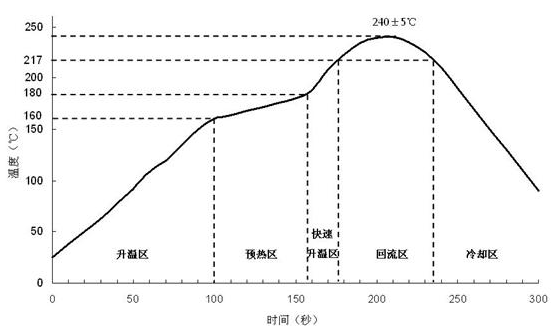 在91香蕉下载安装污版的回流區,溫度設定為245度,恒溫區的溫度為200度。從開始加熱到達峰值溫度大約需要35秒左右的時間。回流區的升溫率可以計算為45度除以35秒,即1.3度/秒。