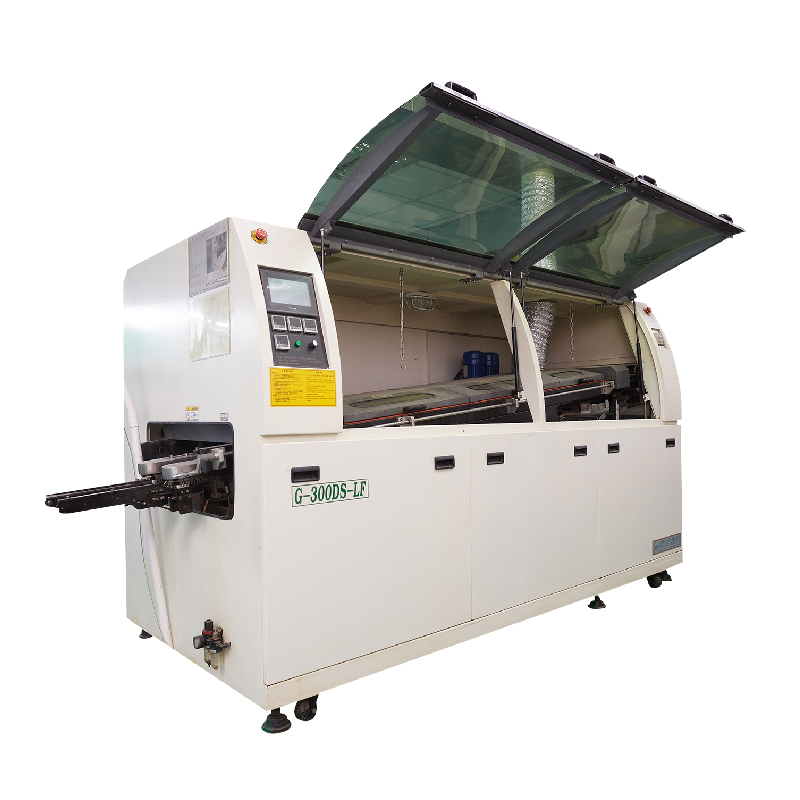 波峰焊錫機的焊接表麵與高溫液態錫直接接觸。材料為錫銀銅合金,溫度的設定也是焊料的熔化階段。波峰焊錫機是使插板的焊接表麵直接與高溫液態錫接觸,從而達到焊接的目的。高溫液態錫保持一定的坡度,液態錫通過特殊裝置形成類似於波浪的通道,因此波峰焊錫機的主要部分是波浪焊接爐。