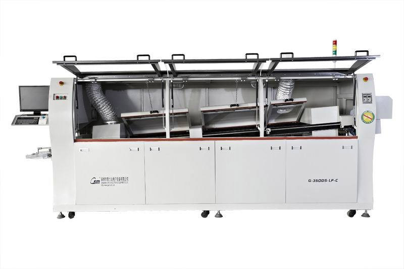中型波峰焊,型號:G-350DS-LF大型全電腦控製波峰焊各一台以及自動插件線5段,進板接駁1台,出板接駁一台,後焊線9米。
