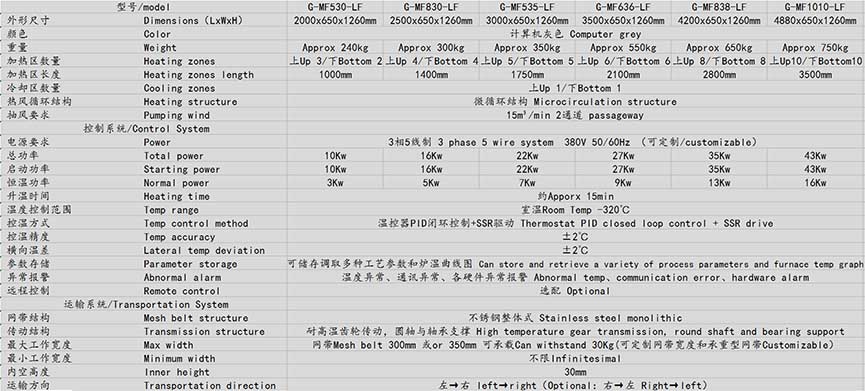 4、相鄰溫區差別MAX可達100℃,不串溫,每個溫區之溫度和熱風風速獨立可調節,運輸采用變頻控製、濕度控製精度可達±10mm/min,特別適合 BGA/CSP及0201等焊接